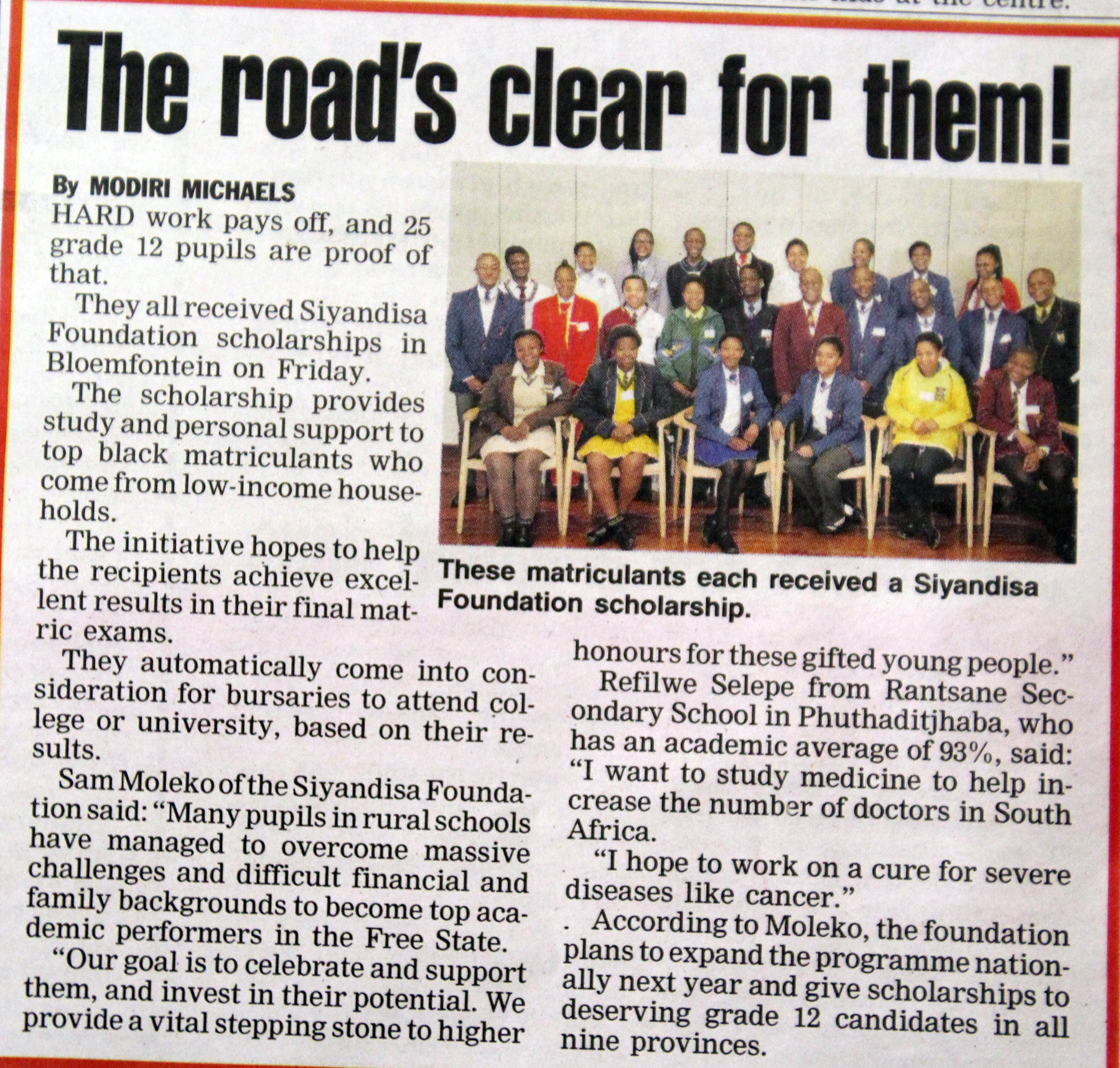 Today in Bloemfontein 25 courageous grade 12 learners from the Free State who have excelled at academic level despite tremendous personal challenges, were awarded the very first Siyandisa Foundation Scholarships.