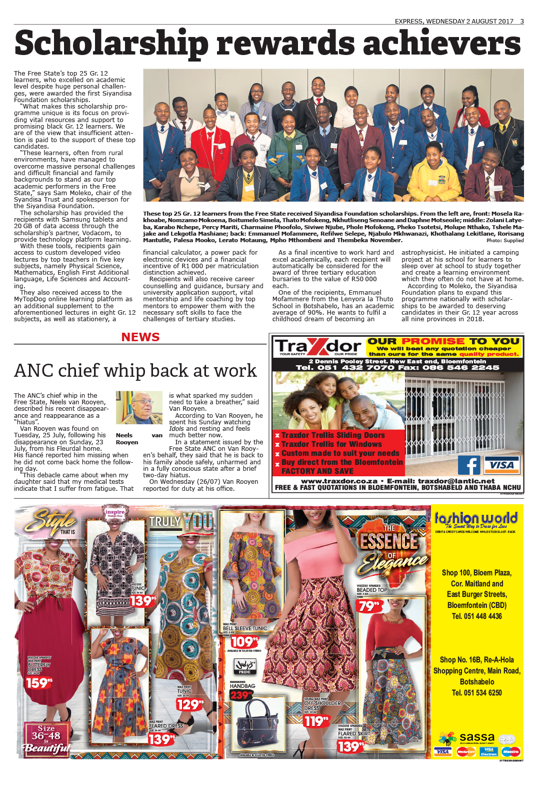 “What makes this Scholarship Programme like no other is its focus on providing vital resources and support to promising black grade 12 learners in their matric year. We are of the view that insufficient attention is paid to the support of these top candidates. These learners, often from rural environments, have managed to overcome massive personal challenges and difficult financial and family backgrounds to stand as our top academic performers in the Free State. Our goal is to celebrate and support these young people and invest in their potential. Accordingly, we have established a focus on ‘Growing excellence’ in our scholarship programme and through this initiative provide a vital stepping stone to higher honours for these gifted individuals,” says Sam Moleko, Chair of Siyandisa Trust and spokesperson for the Siyandisa Foundation.